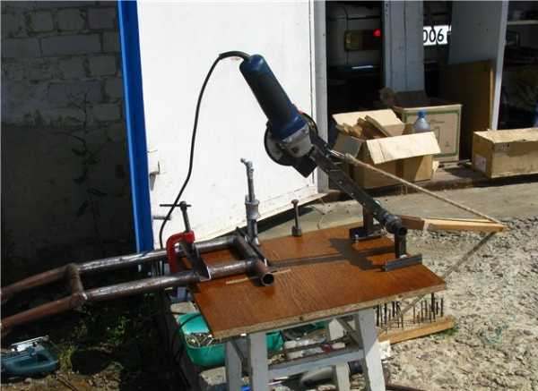 Для того чтобы она пилила наподобие электроножовки, изготавливают раму с маятниковым шарниром и приспособлением для крепления самой болгарки. Все это устанавливается и закрепляется на столе из дерева или металла. По сути, получается отрезной станок.