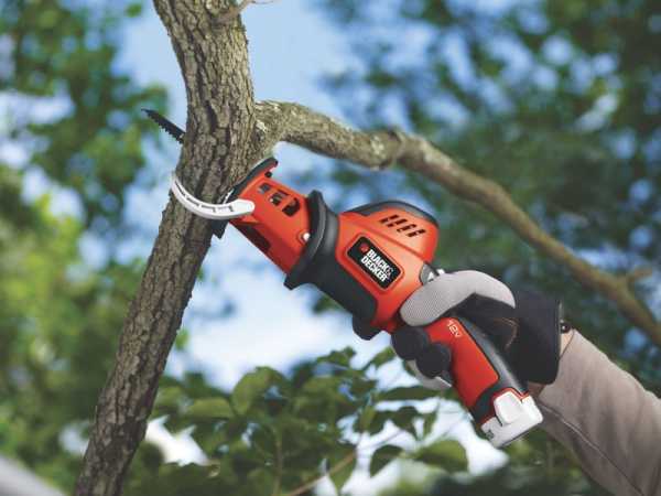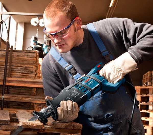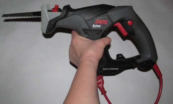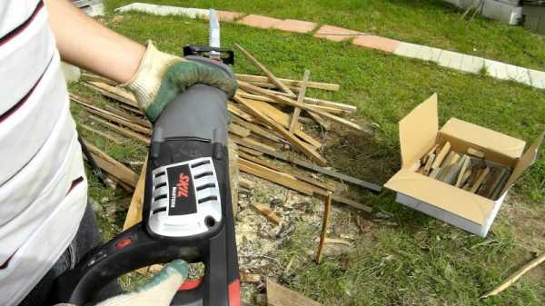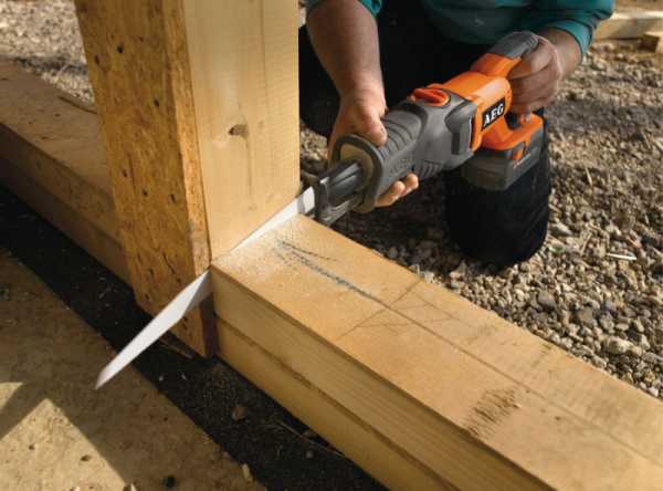 - Электроножовка сабельного типа — мощный инструмент, используя который резать дерево намного проще и комфортнее чем вручную.