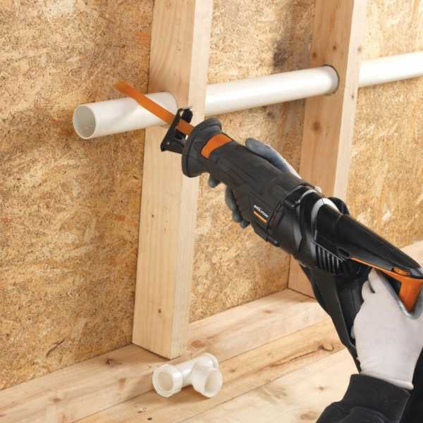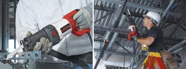 По конструкции она похожа на электролобзик. Но электроножовка по дереву не нуждается в ровной поверхности, на которую опирается электролобзик. К тому же последний не справится с прочными и жесткими материалами, такими как стальные трубы или арматура, а сабельная пила большой мощности легко их режет. Плюс с ее помощью можно распилить стройматериалы в труднодоступных местах.