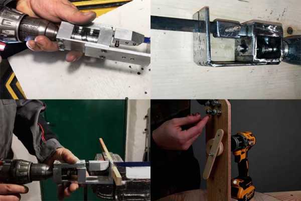 В принципе, насадка для дрели готова. Остается изготовить держатель для полотна электроножовки. Здесь большое количество вариантов. Один из них – это квадратного сечения деталь, в которой на фрезерном станке делается вырез толщиной чуть больше толщины пилки. С торцов делаются отверстия с резьбой (обычно два), куда вставляются винты соответствующего диаметра. Они будут зажимать пилку.