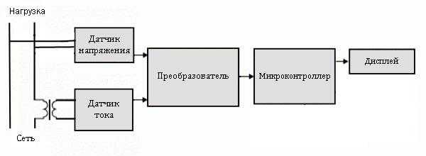 - преобразователь (преобразует аналоговый сигнал в цифровой с последующим преобразованием его в импульсный сигнал, равнозначный потребляемой энергии)