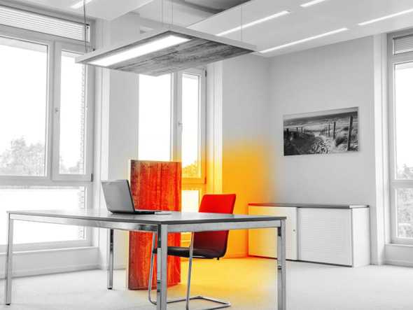Установка обогревательных систем на потолке помогает отлично сэкономить площадь помещения, не занимая лишнего пространства стен и пола. Для глаз человека потолочные тепловые элементы совершенно незаметны, но в тоже время — это источник приятного и эффективного тепла. Монтаж панелей производится в сочетании с существующим декором, что делает их практически незаметными. Инфракрасные панели водяного типа могут использоваться в качестве кондиционеров в жаркий период года.