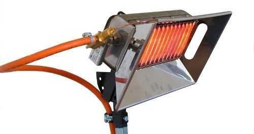 - Газовые. Источником энергии в подобных обогревателях является смесь газа и воздуха, сжигаемая на поверхности термостойких перфорированных пластин, расположенных внутри. Ввиду своей высокой мощности газовые ИК обогреватели редко используются в быту. Чаще всего они используются на производственных цехах или на улице