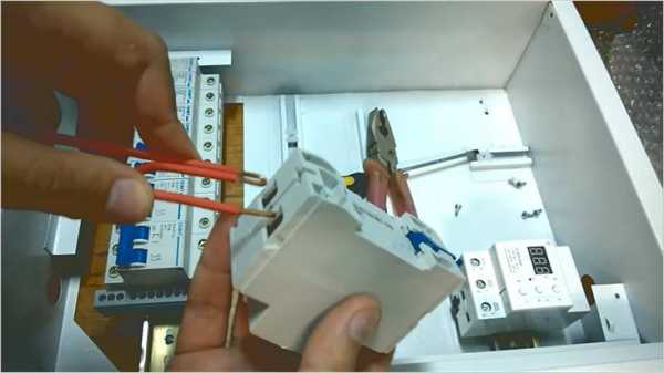 Настало время проверки. Подключив реле напряжения к сети, проверим напряжение на каждом автомате. |