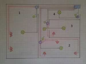В первую очередь вы должны составить подробный план своей квартиры и указать на нем места установки электророзеток, выключателей и осветительных приборов.