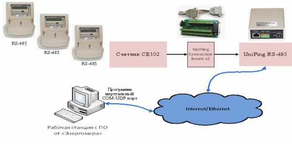 В данной статье рассказано о создании системы дистанционного учёта потребляемой электроэнергии (в дальнейшем по тексту — система), построенной на базе устройства UniPing RS-485. Данная система позволяет удалённо по двухпроводной линии снимать показания и управлять счетчиками электроэнергии CE102 производства компании Энергомера и передавать эти данные по сети Ethennet/Internet на компьютер с установленным ПО.