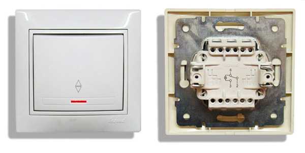 Переключатель (проходной выключатель) внешне ничем не отличим от обычного выключателя, но в его основе лежит принципиально другая, более сложная схема управления.