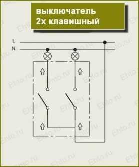 На данной схеме двухклавишный выключатель позволяет управлять двухламповым светильником, включая каждую лампу отдельно или обе лампы вместе.