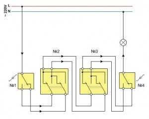 Проходной выключатель схема подключения на 3 точки