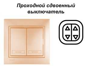 Проходной выключатель это установочное устройство, которое позволяет управлять освещение из различных мест независимо друг от друга. По одному не устанавливаются, только в паре или тройке. Двухклавишный выключатель объединяет в себе два одноклавишных проходных выключателя.