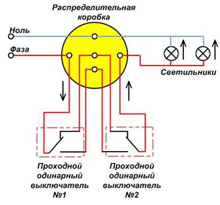 Как работает схема подключения для проходного выключателя
