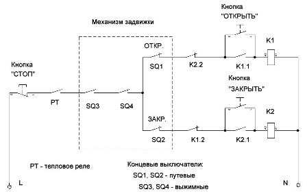 Управление задвижкой происходит с помощью магнитных контакторов. Если обесточить контакторы, то система перейдет в нерабочее состояние.
