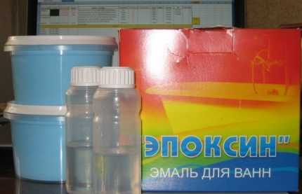 Эпоксидная эмаль для ванной ― суспензия наполнителей и пигментов в составе эпоксидной смолы с добавлением отвердителя. Данный состав используют не только для реставрации ванн, но также окраски стальных поверхностей, которые могут подвергаться действию растворов щелочей. Плюс эмали в том, что она быстро сохнет и может продолжительное время находиться в эксплуатации, благодаря своей устойчивости к механическим повреждениям.