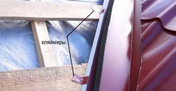 1. Сначала прикрепляют сплошную обрешетку из дерева на месте соединения двух скатов крыши.
