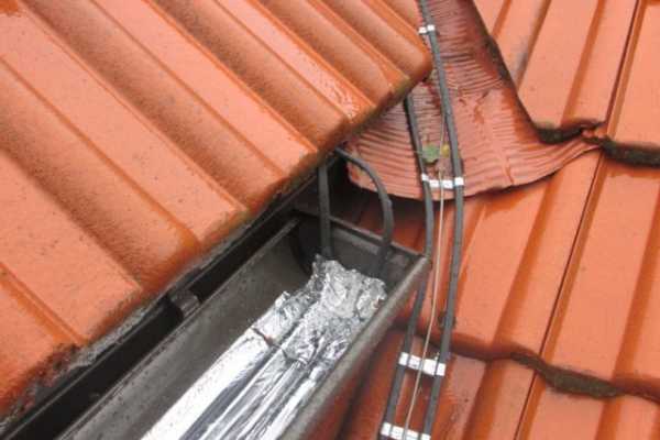 Поэтому узел греют с помощью специальных кабельных систем, закрепленных на наружной планке. В зимнее время наиболее уязвимой считается нижняя часть ендова, поэтому греющий кабель укладывают непосредственно в канал и под скаты металлической крыши, на высоту не более 120-150 см.