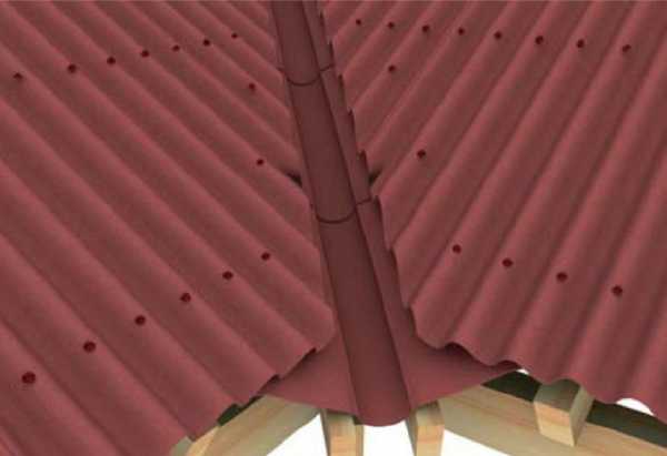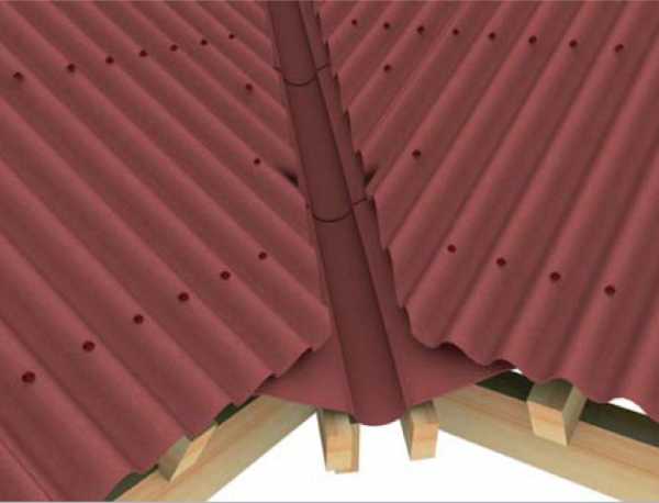 - Методом перехлеста покрытия по линии сопряжения скатов крыши.