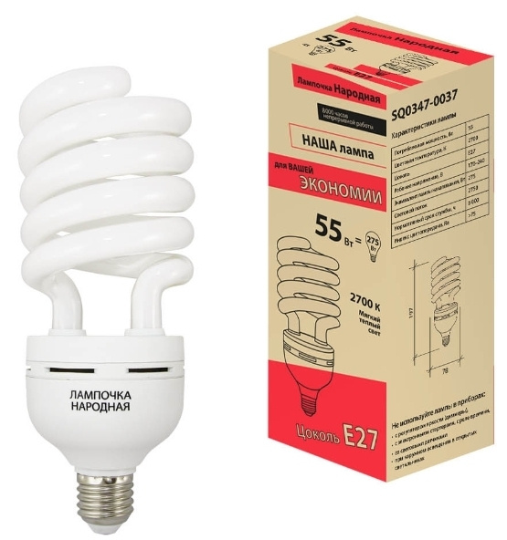 Компактная люминесцентная энергосберегающая лампа с ПРА
