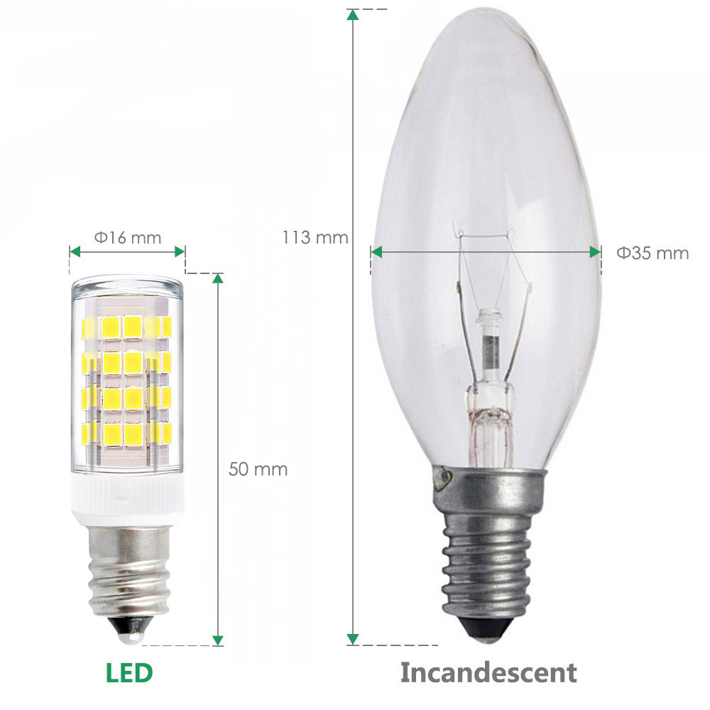 Светодиодная лампа E12 — Лампы-канделябрыИмея диаметр 12 мм, эти типы ламп считаются меньшими. Обычно они используются для ламп ночного освещения, но их также можно найти в некоторых декоративных лампах, используемых над люстрой.