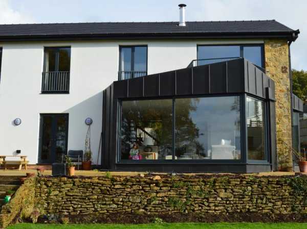 Кроме функциональной составляющей такая комбинация придает общей постройке респектабельность и уникальность. К тому же позволит в значительной степени компенсировать теплопотери, большая часть которых отведена на широкие обзорные окна.