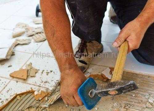 Далее выполняется самая грязная часть работ – срезается штукатурка, размывается меловая или известковая побелка потолка. Удаляется напольное покрытие до бетонного основания, деревянные полы разбираются и удаляются из квартиры.
