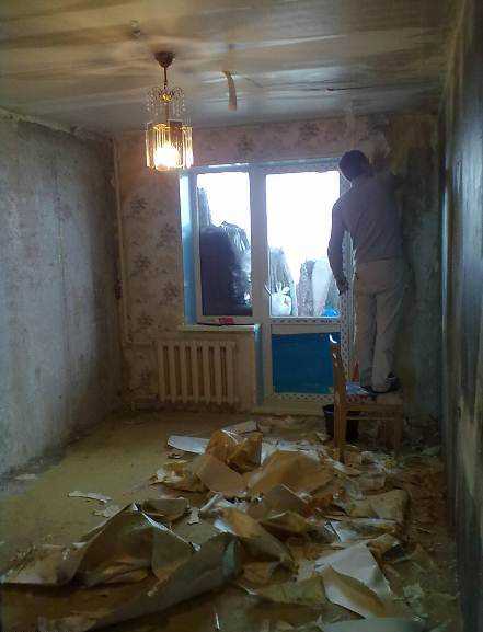 - С потолка и стен снимается старая отделка;