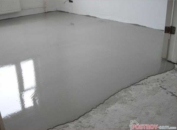 Как правило, к этому моменту стяжка стала достаточно прочной и её можно грунтовать. После этого плоскость заливают слоем самовыравнивающейся смеси.