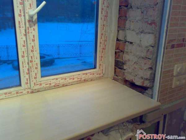 Пока плиточник затирает швы, другие мастера могут заняться монтажом утеплённых пластиковых откосов, подоконников и столешниц.