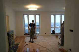 В таком случае, можно выполнить монтаж подвесных потолков и поклейка обой под покраску. В качестве напольного материала, может использоваться ламинат. Укладка ламината не требует больших затрат и проводится достаточно быстро.
