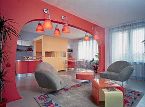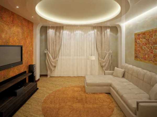 Осуществляя евроремонт зала, дизайнеры очень любят работать с гипсокартоном. Этот мягкий материал позволяет создавать любые геометрические формы без механического воздействия на стены. Иначе говоря, создать арку в дверном проеме или нишу в стене зала можно, не прибегая к частичному демонтажу перегородок. С помощью гипсокартона создаются любые формы. Эта работа занимает меньше времени, чем демонтаж и потому стоит дешевле.