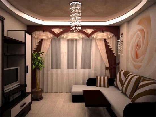 - зонирование. Если в квартире мало пространства, то зал можно разделить на несколько функциональных зон;