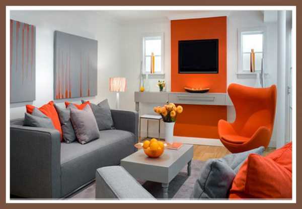 Оранжевый — цвет солнца и тепла. Здесь, пожалуй, и телевизора не надо. Можно просто сидеть и наслаждаться окружающей красотой дизайна.
