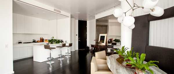 Арки в интерьере на сегодняшний день весьма популярны. Оригинальный зал, который граничит с кухней.