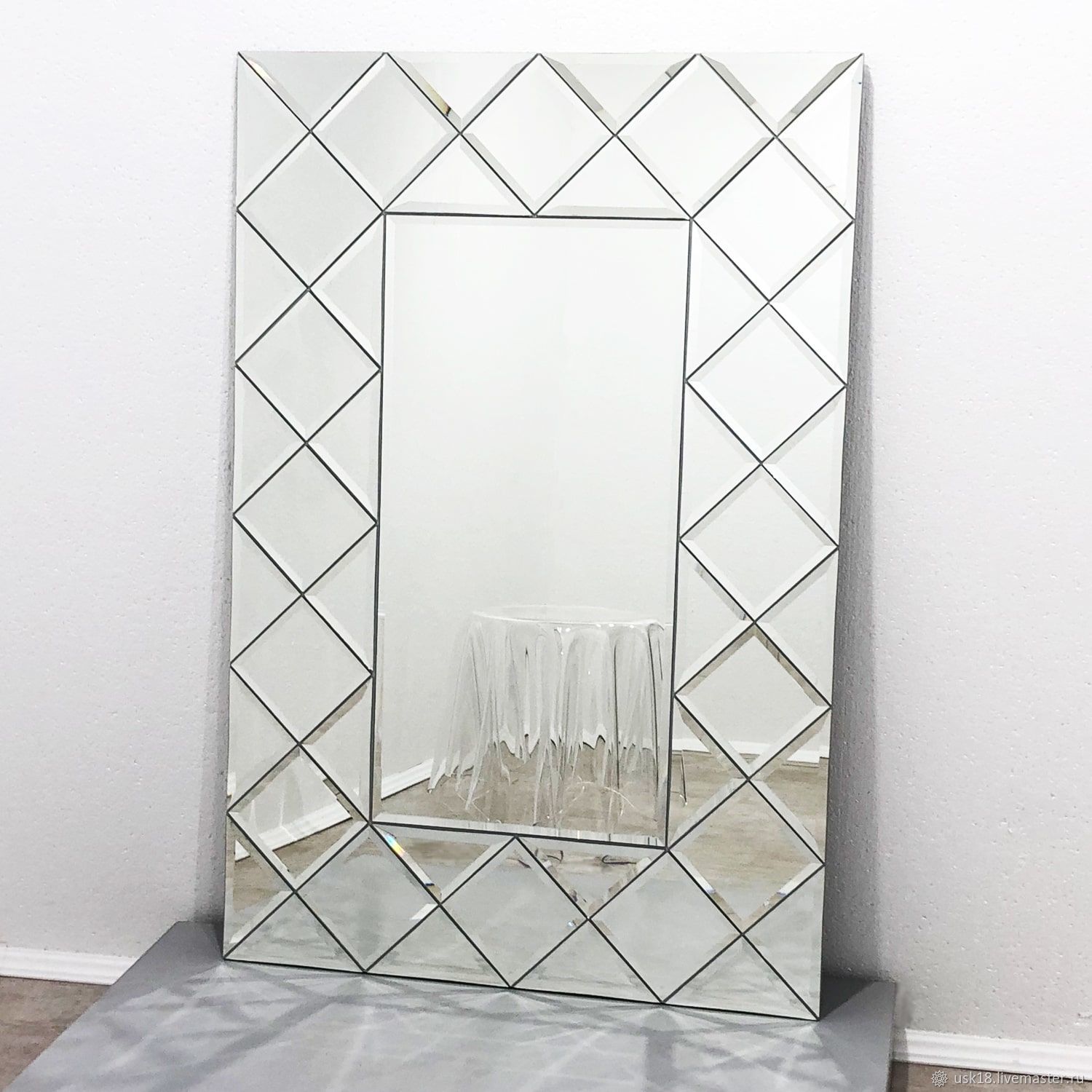 Зеркальные фацеты купить можно в нашей мастерской, Мы предлагаем клиентам широкий спектр услуг связанных с обработкой стекла. Индивидуальный подход к каждому клиенту, оригинальное и уникальное исполнение, мы предоставим Вам работу высокого качества! Фацетное зеркало можно купить в готовом виде, также можно заказать предмет по собственным предпочтениям и пожеланиям.