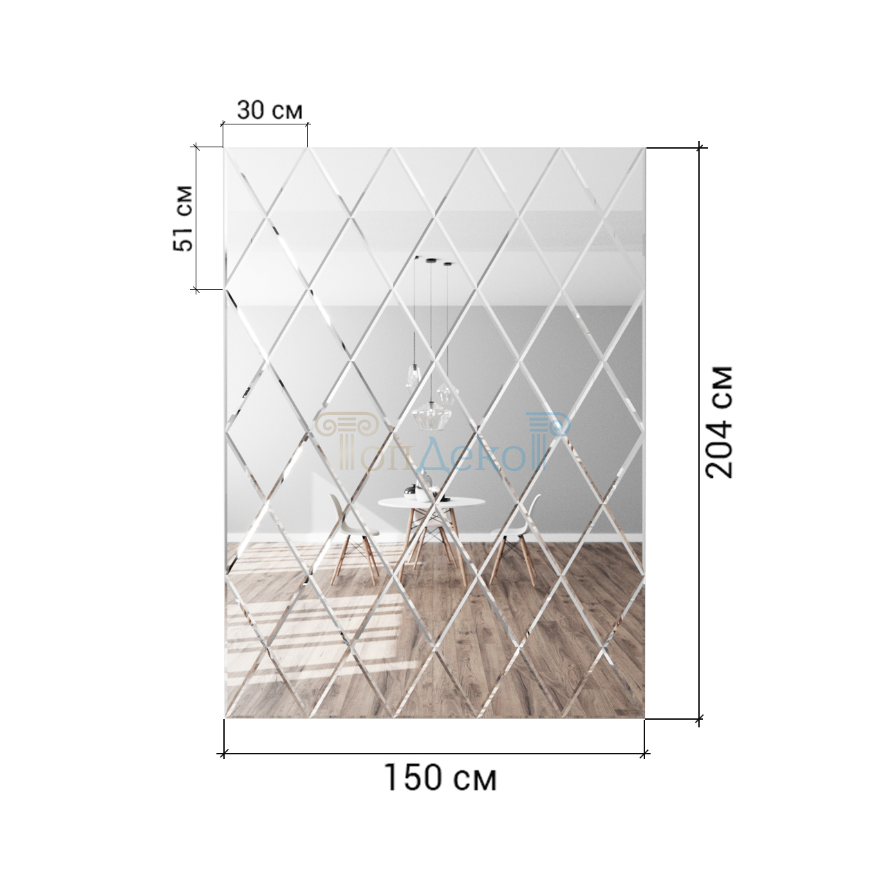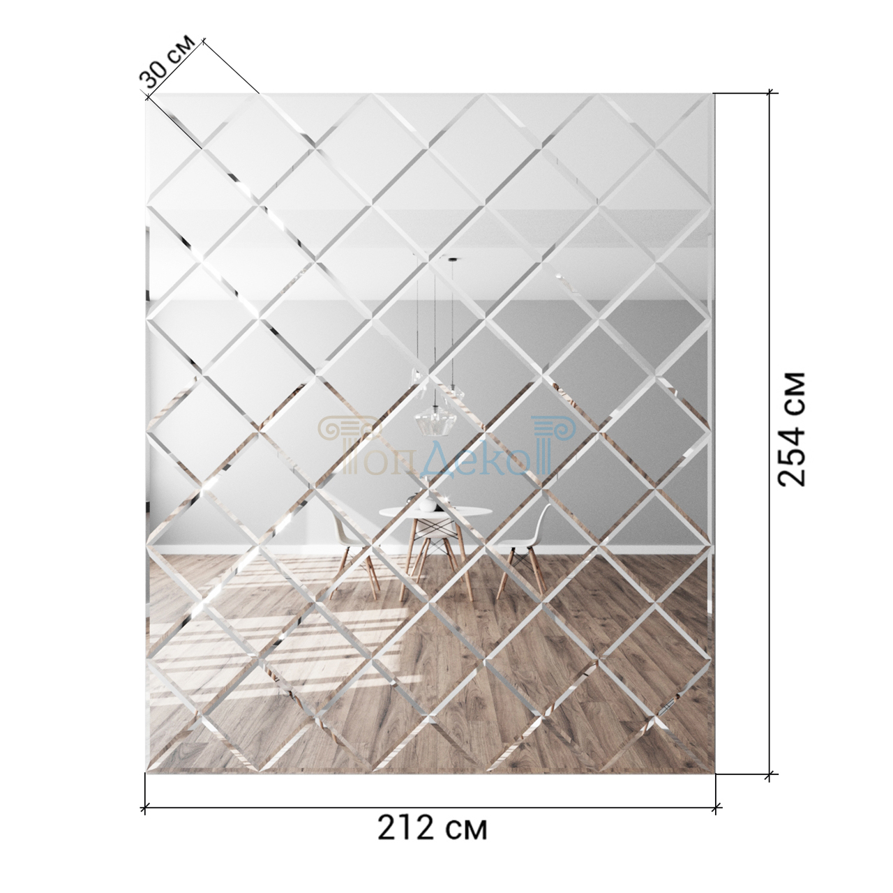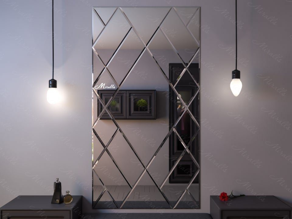 - зеркальное панно — зеркало ромбами с фацетом в раме визуально расширяет пространство и помогает акцентировать внимание на предметах интерьера.Отлично подходит для больших комнат;