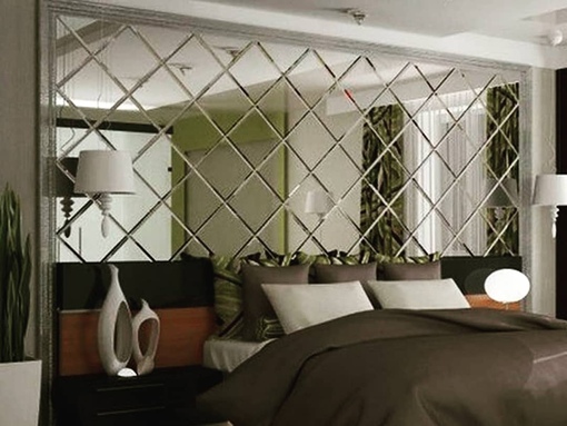Обработанные таким образом зеркала можно установить в спальнях и ванных комнатах.При помощи зеркальной плитки могут оформляться полы и стены. Также она может выступать в настольного полотна. Процедура фацетирования зеркала показывает выполнением своей главной функции выгодно изысканность изысканности интерьера.