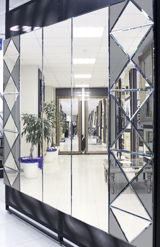 Одна из самых популярных сфер использования фацетов — зеркальные витражи. Кроме этого, приобретая зеркало на заказ для мебели, можно использовать и классические стекла.