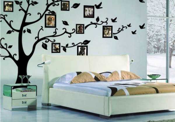 1. Простые нарисованные деревья в интерьере на стене. Никакой реалистичности, графические и стилизованные картинки. Почти полное отсутствие цветов и листьев, допускается применение одного-максимум двух цветов. Неплохое украшение для гостиной и столовой, детской, кабинета, спальни.