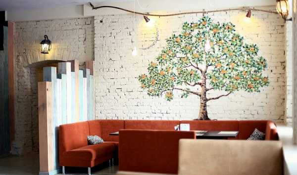 5. Апельсиновое дерево в интерьере на стене. Дерево плодородия и любви. Отвечает за взаимопонимание между любимыми и потомство. Столовая и кухня – лучшие помещения для такого рисунка.