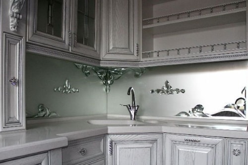 Для создания фартуков используется особое стекло, толщиной 6 мм. Толщина стеклянной поверхности бывает и больше, а само изделие, соответственно, прочнее. Однако в таком случае стоимость стеклянного фартука будет намного выше стандартного.
