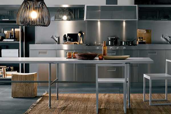 Такой элемент идеально впишется в интерьер кухни в стиле хай-тек, лофт или минимализм, но при желании можно подобрать подходящий вариант и для классических направлений. В целом, фартук из стали до сих пор считается чем-то эксклюзивным. Он придает помещению строгий, стильный, даже «официальный» образ, поэтому металл часто комбинируют с «теплым» деревом.