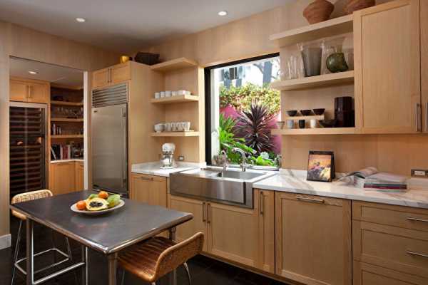Такое покрытие требует предварительной подготовки, которая включает в себя нанесение защитного лака, а также специальных масел, предотвращающих рассыхание. Деревянное изделие можно спрятать за прозрачным стеклом в зоне с плитой, а еще лучше — заменить на более доступные по цене МДФ и ДСП.
