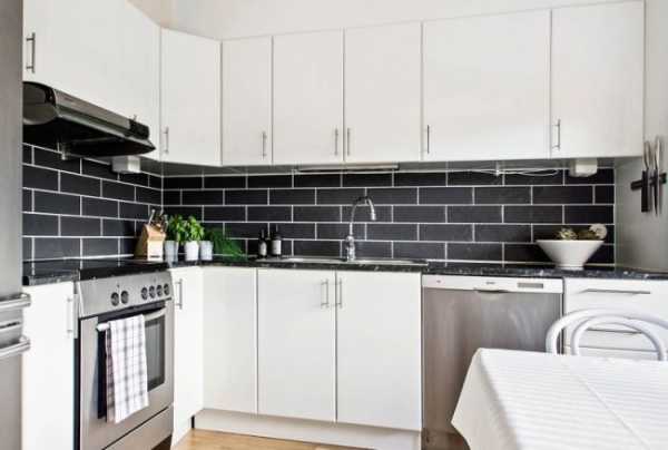 Плитка кабанчик черный будет смотреться эффектно в сочетании с черными или с белыми мебельными фасадами, а также с деревом любых оттенков. Для решений в стиле лофт и в скандинавском стиле актуально нетрадиционная раскладка, использование контрастов в схеме плитка-плитка (чередование черно-белых кирпичиков) или плитка-шов (использование контрастных затирок).
