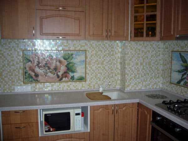 В этом разделе мы рассмотрим, как укладывается мозаика для кухни на фартук.