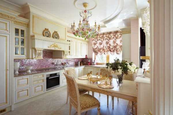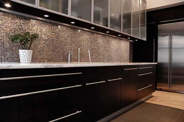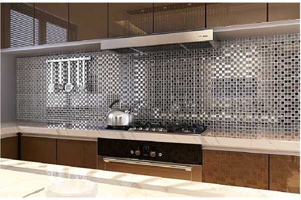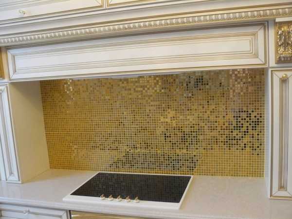 Идеальный вариант применения подобного материала — создание интерьера кухня в классическом стиле, или в стиле артдеко. У металлической мозаики есть всего один недостаток — на ее поверхности хорошо видны отпечатки пальцев и грязные потеки, поэтому ухаживать за ней придется более тщательно.