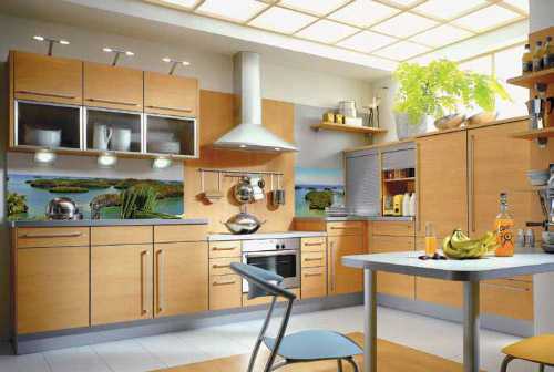 - Важным достоинством является невысокая стоимость этого материала, что позволяет оформить кухню не только красиво и функционально, но и выгодно.