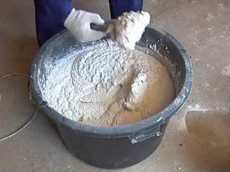 - Теперь нужно приготовить раствор. Если покупалась готовая смесь, то все нужно делать так, как указано в инструкции. В случае, когда смесь готовилась своими руками, то предварительно следует узнать рецепт и также точно ему следовать.