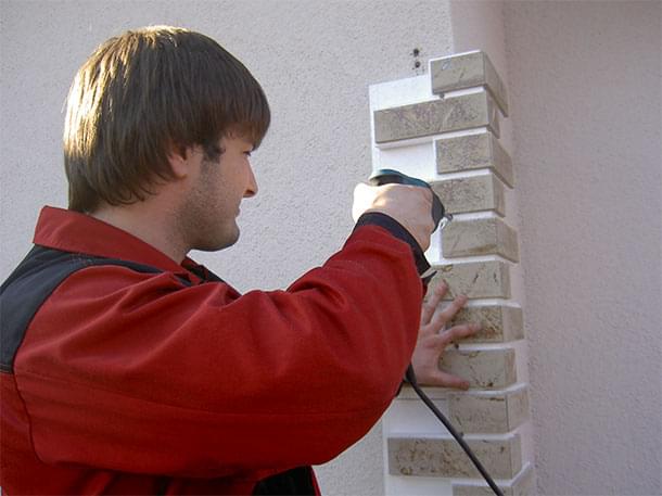 Если используются изделия под кирпич или клинкерную плитку, по окончании отделочных работ необходимо заполнить швы специальным раствором. Работы проводятся с помощью строительного пистолета или вручную.