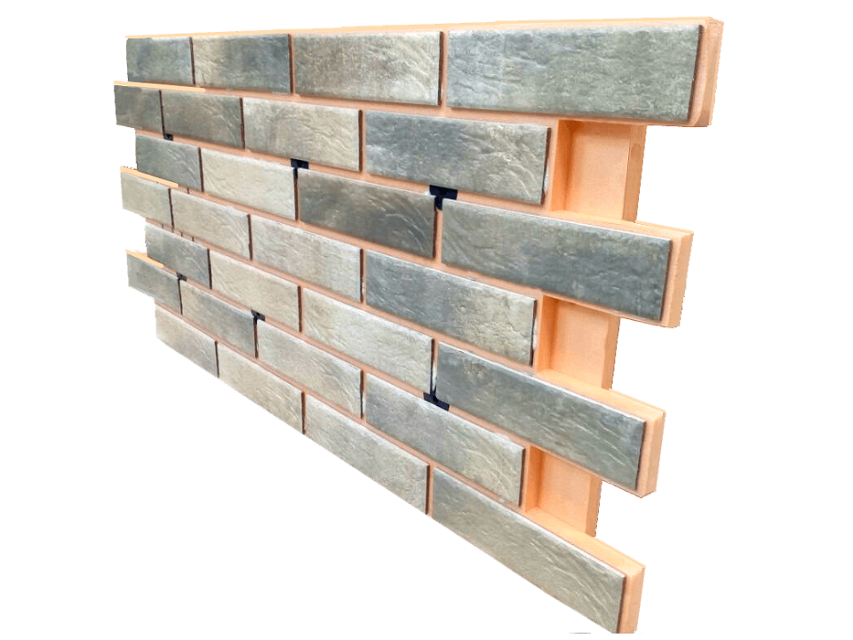 Для производства термопанелей с клинкерной плиткой применяется теплоизолятор. Теплоизолятор в свою очередь изготавливается на основе полиуретана, пенополистирола и пеноплекса. В качестве облицовки используется высококачественный марочный обожженный кирпич-плитка.