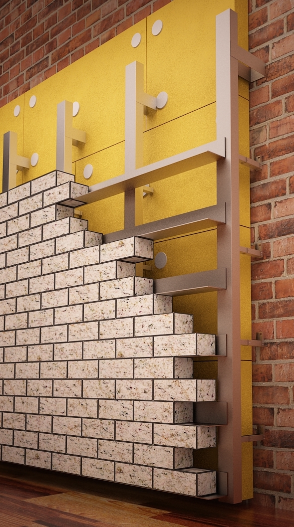 Типичными материалами фасадных панелей для такой системы являются керамическая плитка или тяжелые натуральные/искусственные камни.