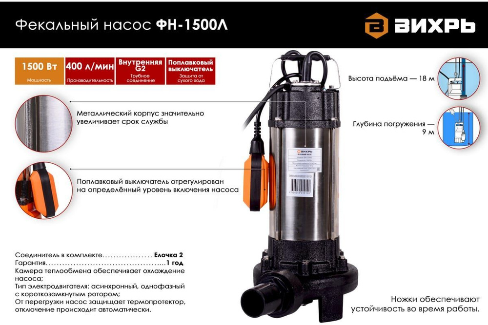 | Джилекс Фекальник 150/6 | 9 | 6 | Погружной | 3400 |